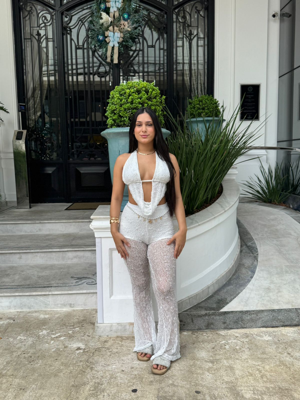 O diferencial está no shorts hot pant que acompanha a calça, mas não é costurado à peça — permitindo que você use as duas partes juntas ou separadas, criando combinações versáteis para praia, festa, Réveillon ou até um look urbano cheio de personalidade.